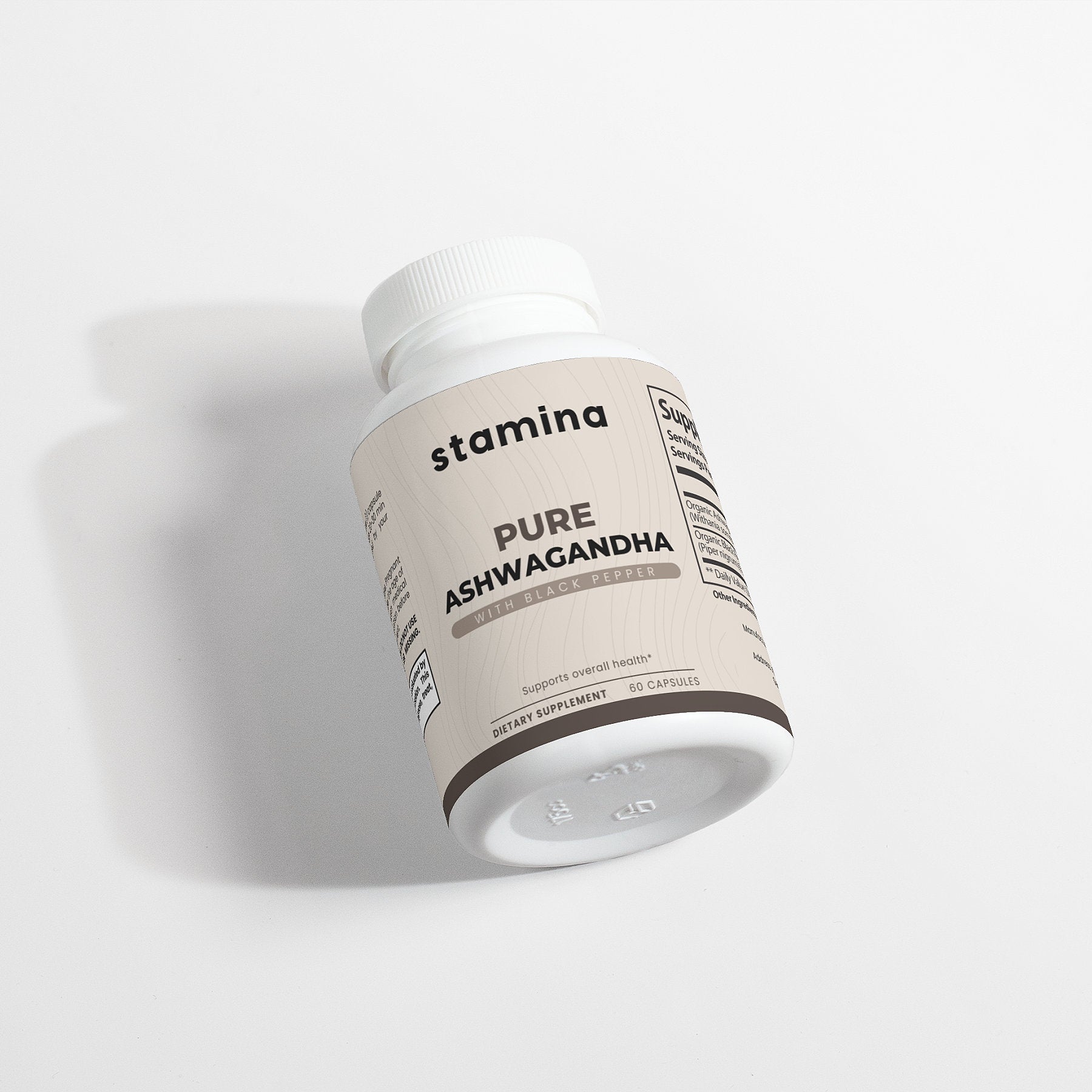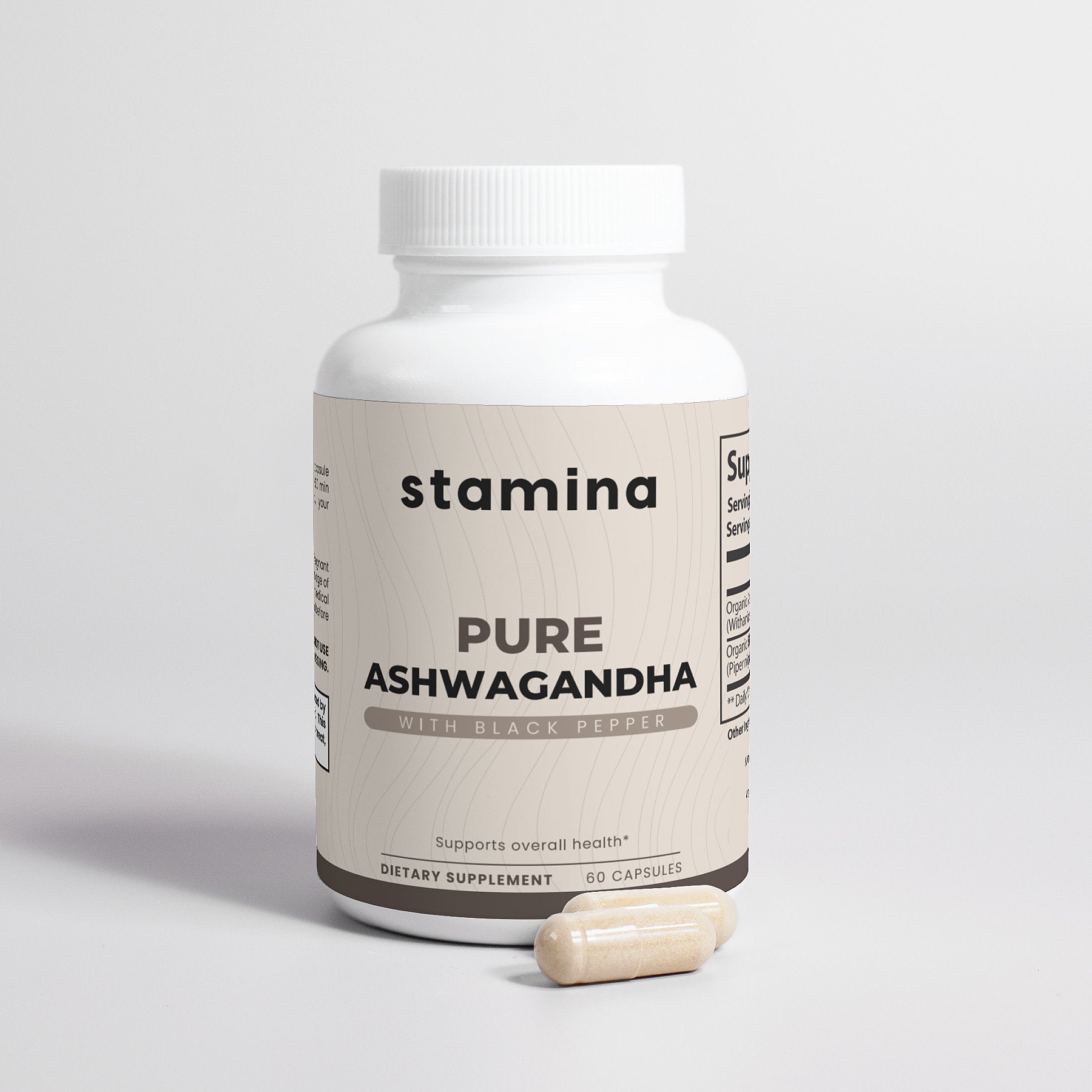 Ashwagandha (Withania somnifera)(root), Black Pepper (Piper nigrum)(fruit), pullulan capsules.
